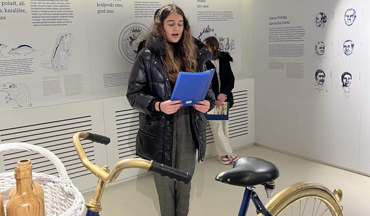 Učenici su nakon uvodnih pozdrava obišli Centar, isprobali multimediju te su se uputili u prostorije podruma gdje je ravnateljica Gradskog muzeja Požega Lidija Španiček održala kratko izlaganje o životu i radu Matka Peića, a nakon toga su održana i izlaganja literarnih radova učenika.